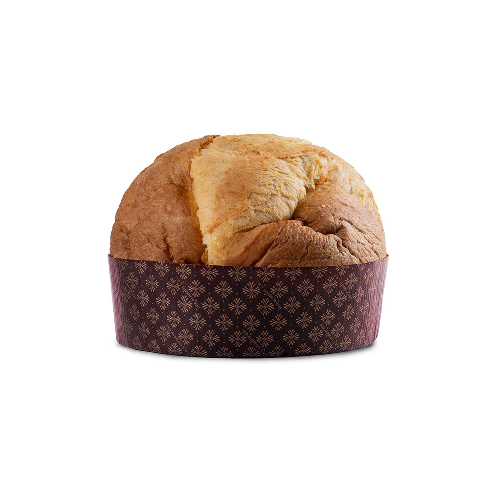 Panettone con impasto pandoro, senza glassa, senza canditi da servire con zucchero a velo in dotazione nella confezione e la crema spalmabile al pistacchio